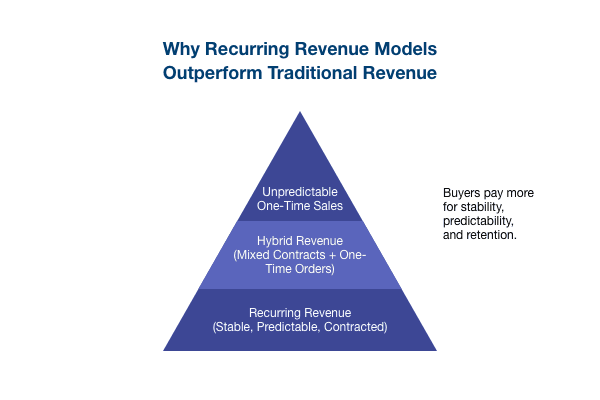 These models create revenue “locks” that reduce volatility, making them extremely attractive for buyers and private equity firms.